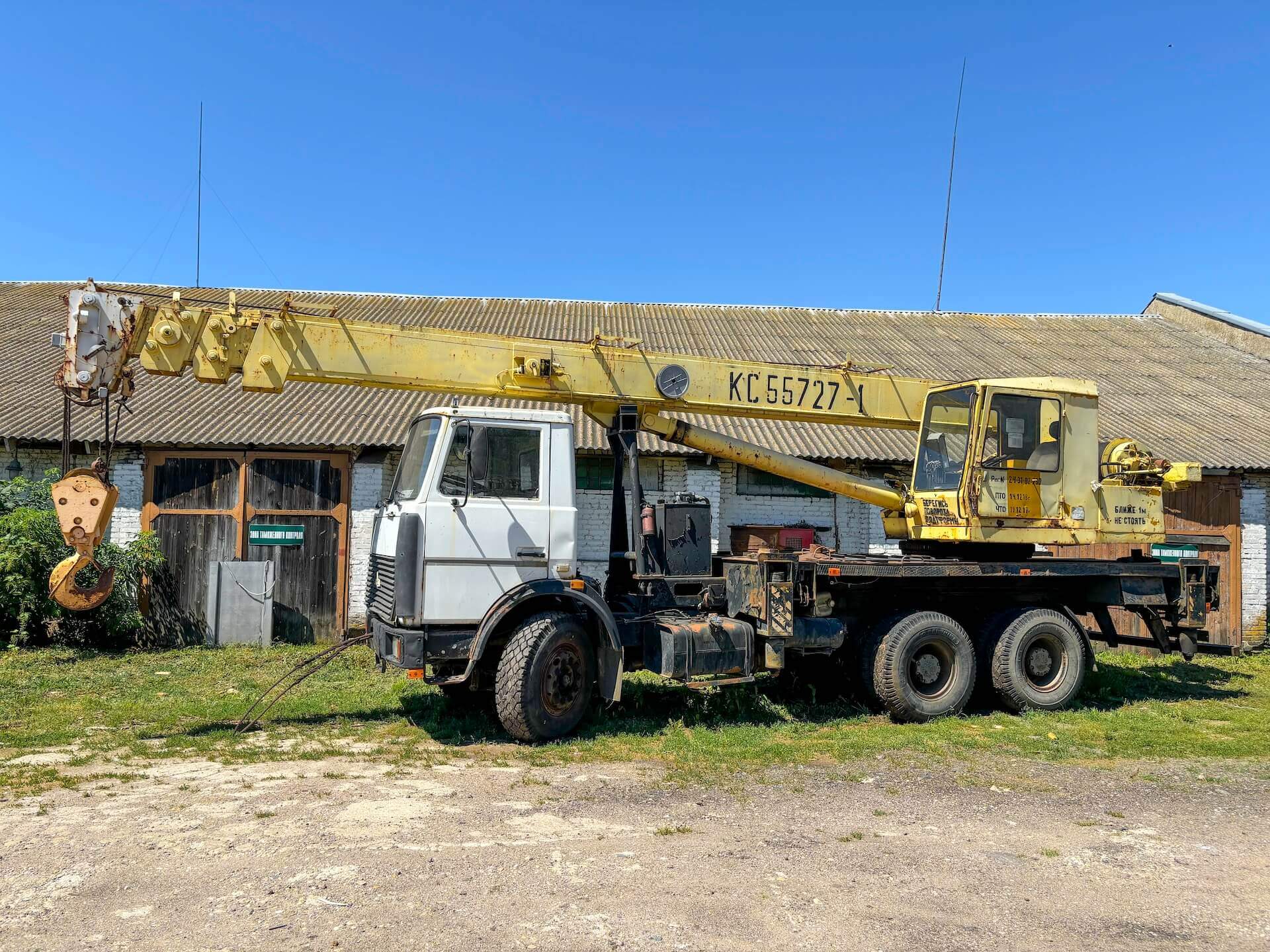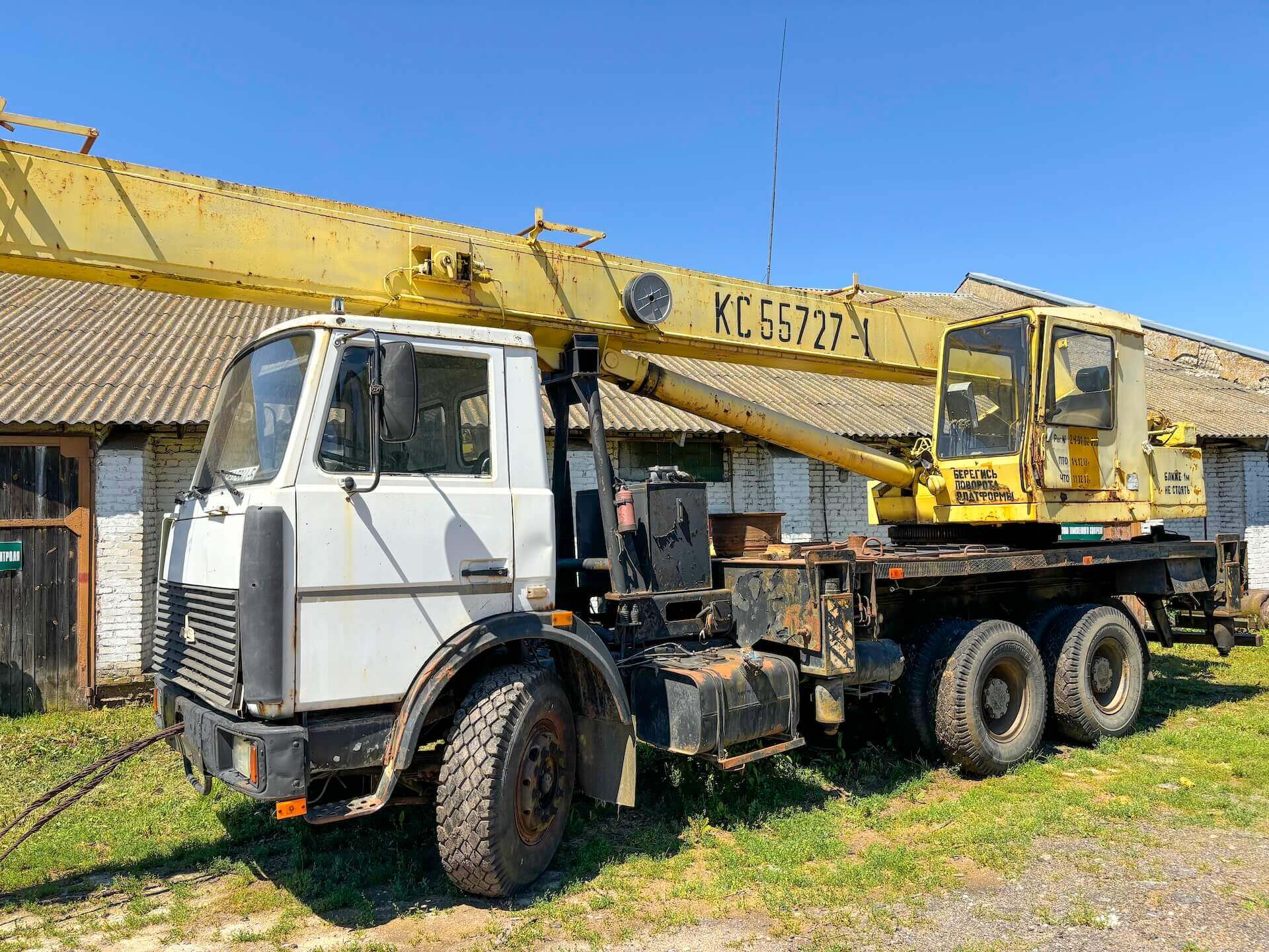 Аренда автомобильного крана с водителем по Минской области. КС-55727-1: грузоподъёмность 25 т, длина стрелы 20 м, высота подъёма 27 м, глубина опускания 3 м. Почасовая оплата (от 4 часов).