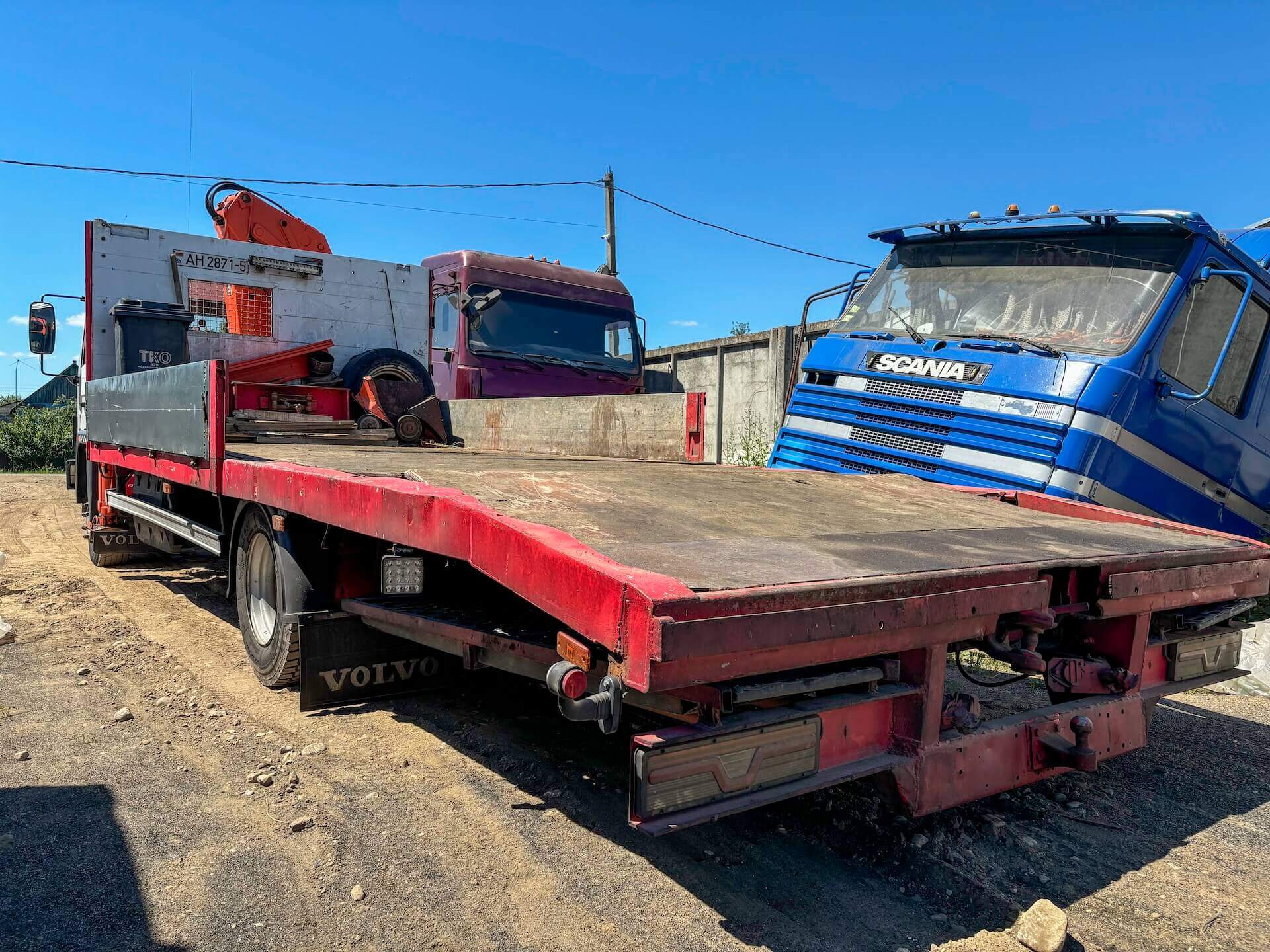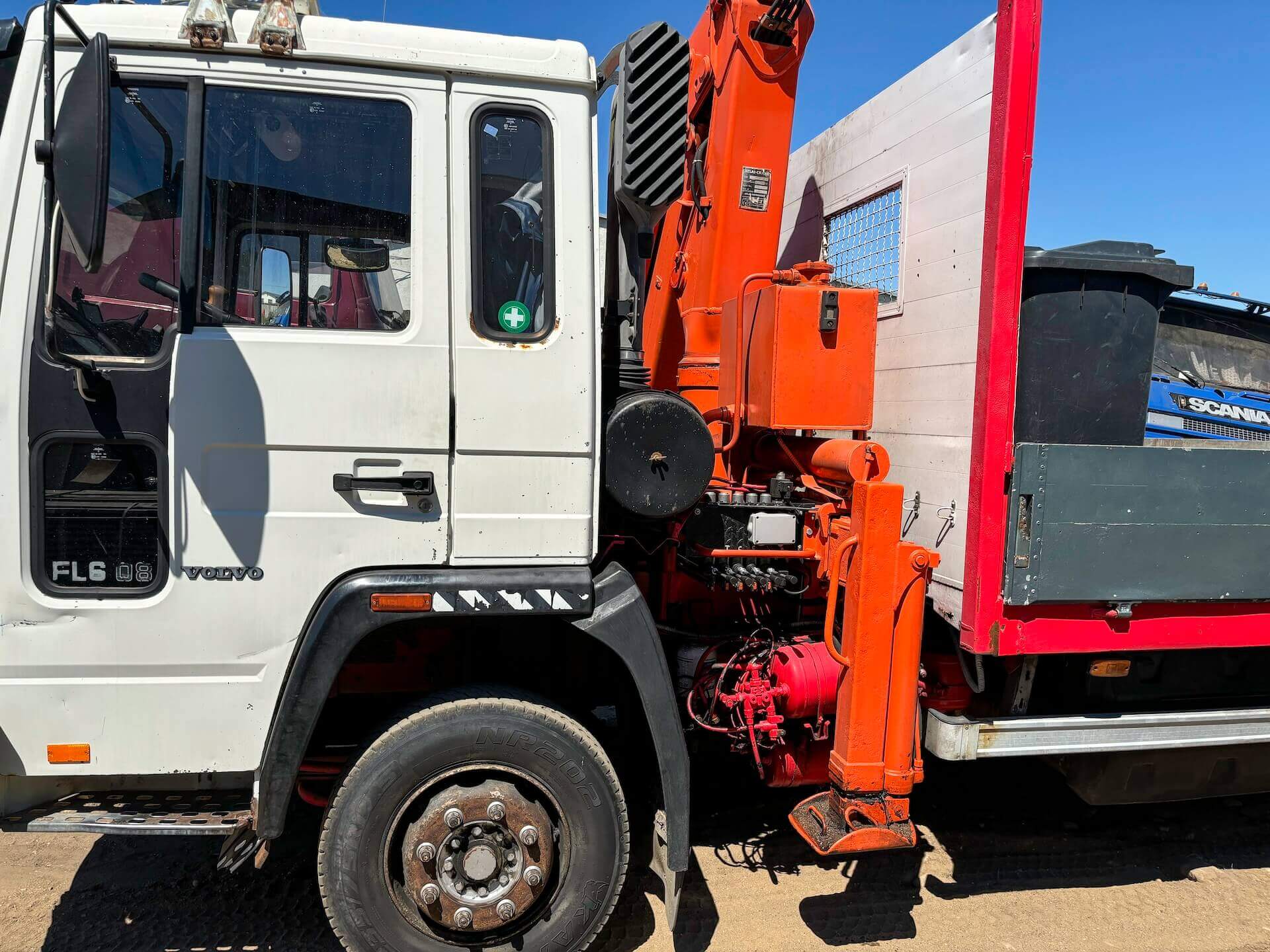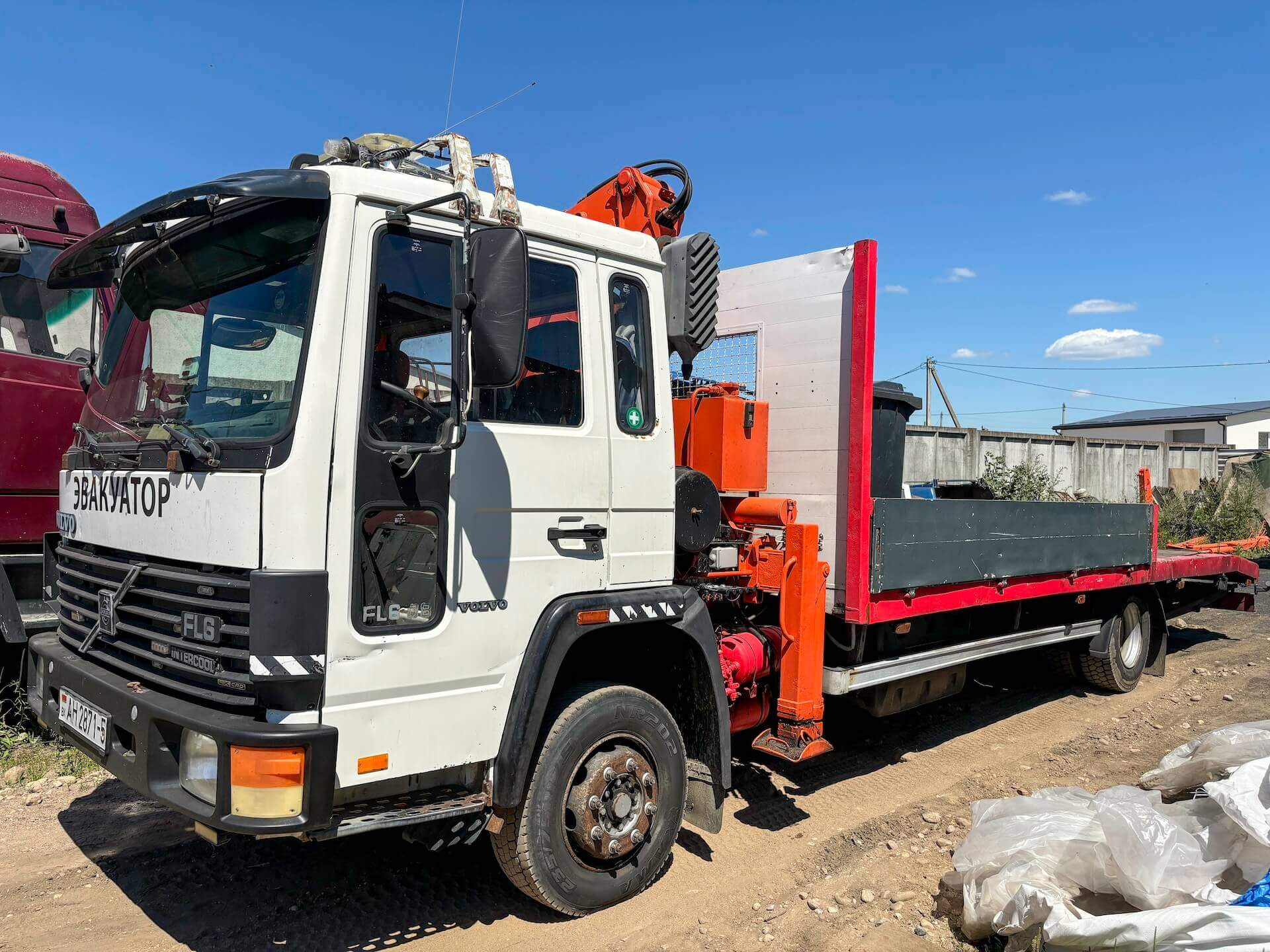 Аренда гидроманипулятора с водителем по Минской области. Volvo FL 608 (Атлас 130): грузоподъёмность шасси 8 т, грузоподъёмность крана 5 т, вылет стрелы 7,5 м. Почасовая оплата (от 1 часа).