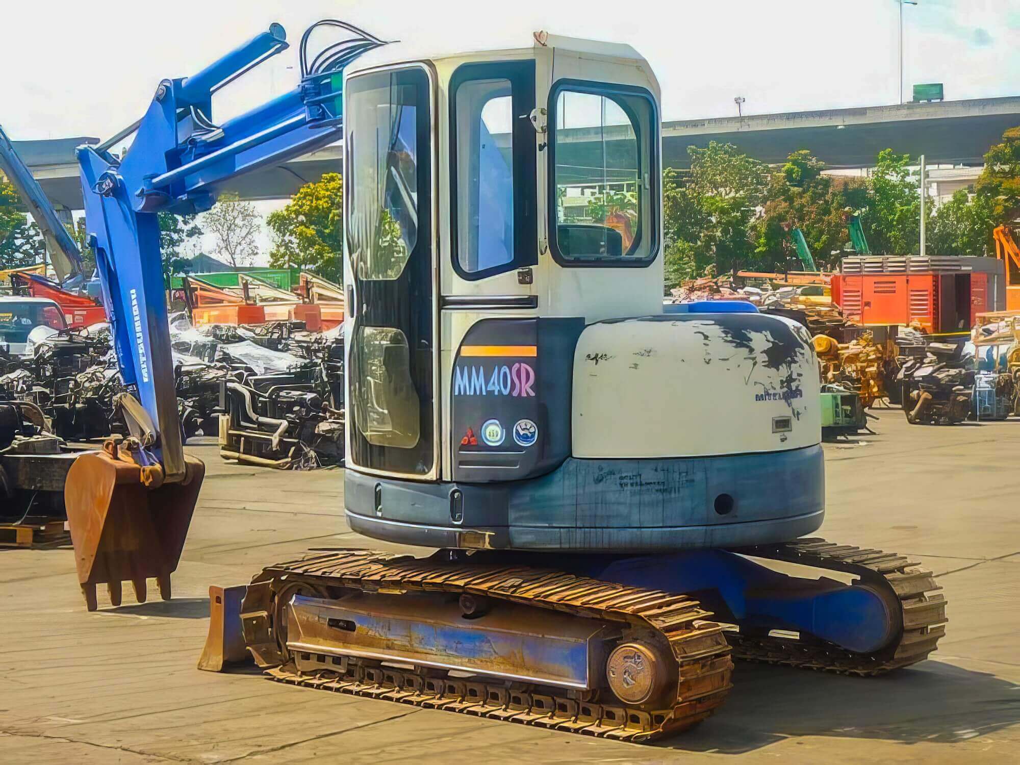 Аренда гусеничного мини-экскаватора с водителем по Минской области. Mitsubishi MM40SR: глубина копания 3,24 м; объём ковша 0,1-0,2 м³; ширина ковшей 30, 50, 120 см, высота разгрузки 5,7 м. Почасовая оплата (от 4 часов).